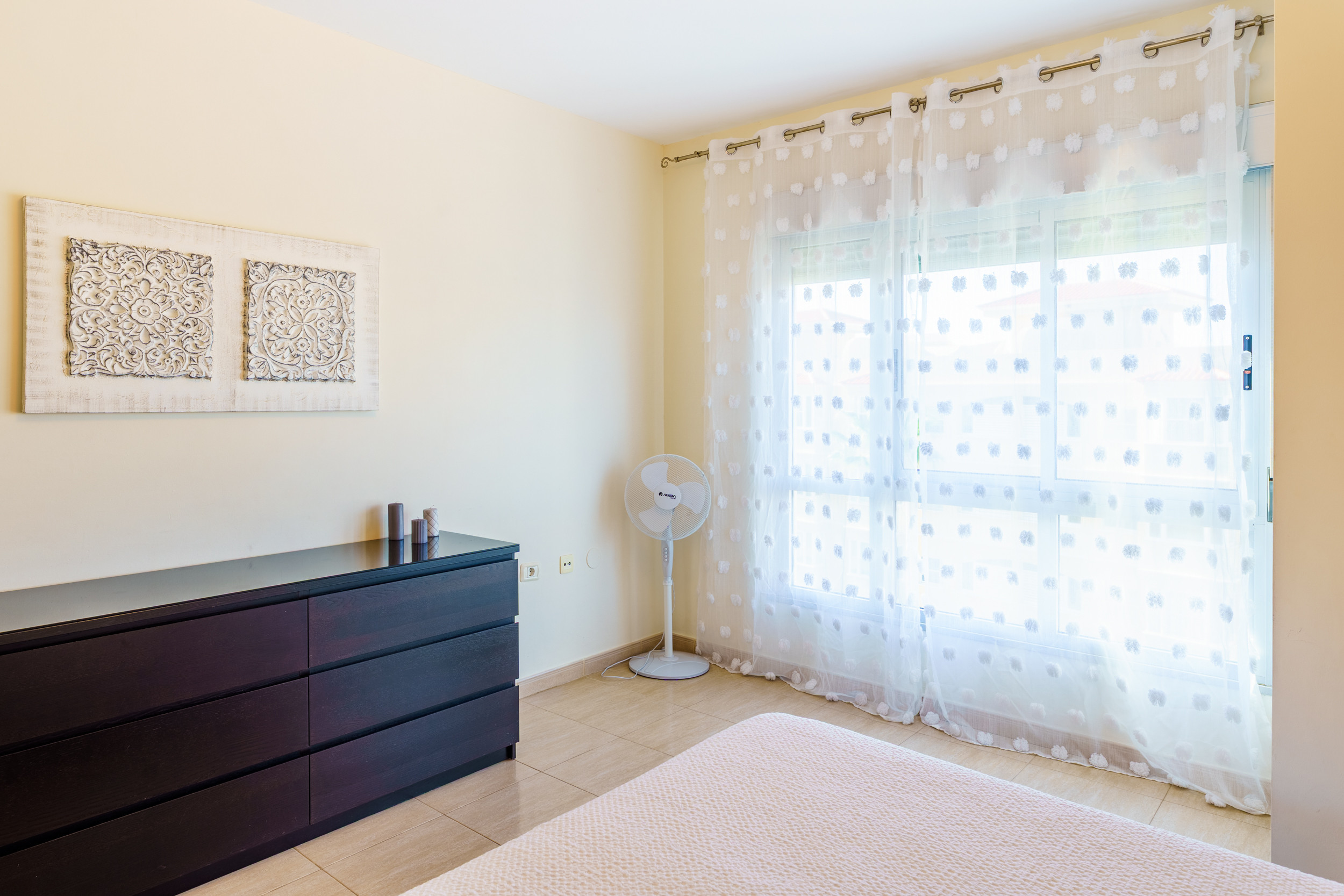 Desde el salón se accede directamente a una agradable terraza privada, un espacio ideal para desayunar al aire libre, relajarse o disfrutar de las suaves temperaturas de la zona durante todo el día.