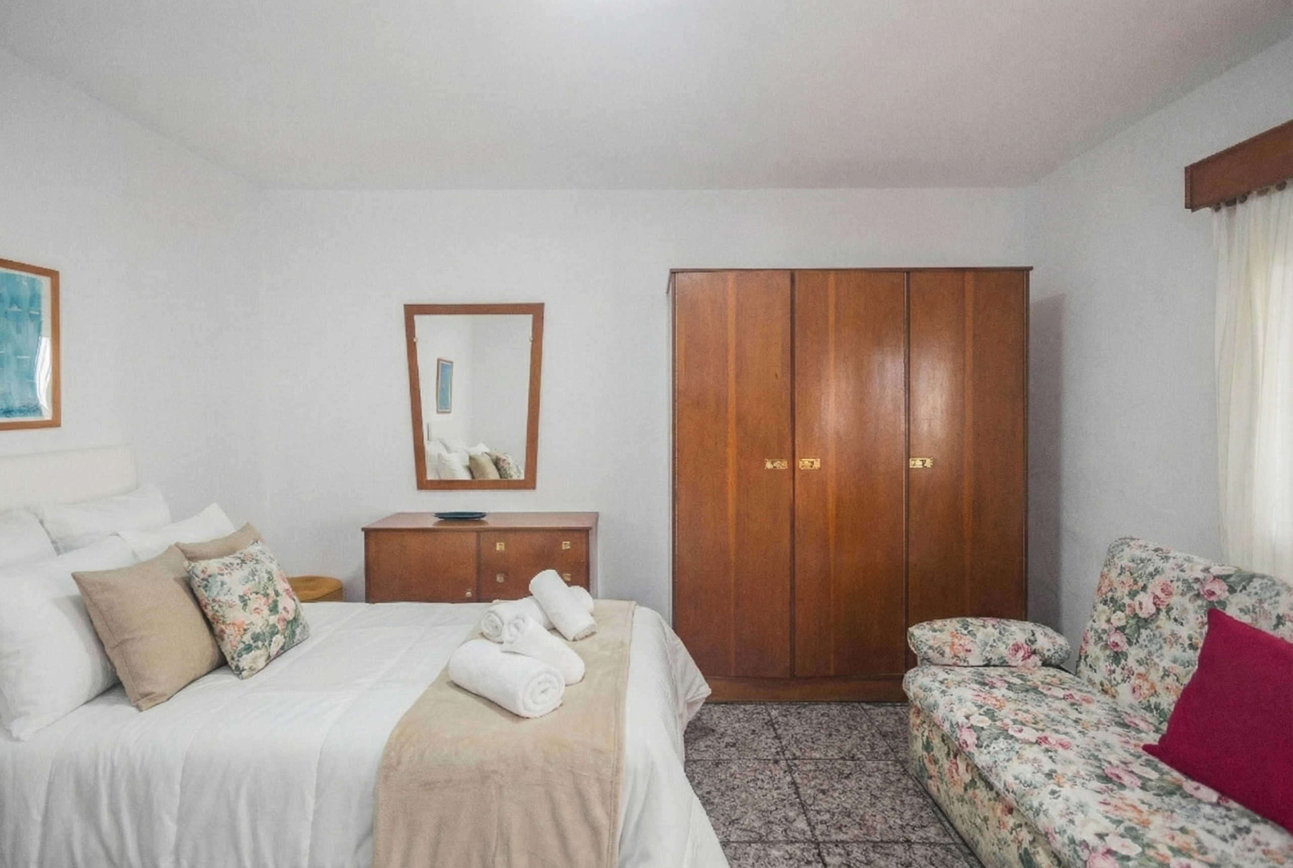It has three bedrooms, two with a double bed and one with a single bed, all decorated in an elegant classic style with wooden furniture, which provide warmth and a cosy atmosphere. The accommodation can accommodate up to 6 people, being perfect for families or groups of friends who wish to enjoy a spacious and comfortable stay.